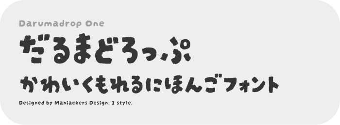 だるまどろっぷは、民芸、伝統工芸、昭和、和からイメージされた手書き風のかなフォントです。クレヨンで書かれたようなあたたかみがあり、どこか懐かしさを感じさせてくれるフォントになっています。ウェイト数は1つしかなく、漢字未対応のためサイトの雰囲気を考慮して使う必要があるフォントでもあります。